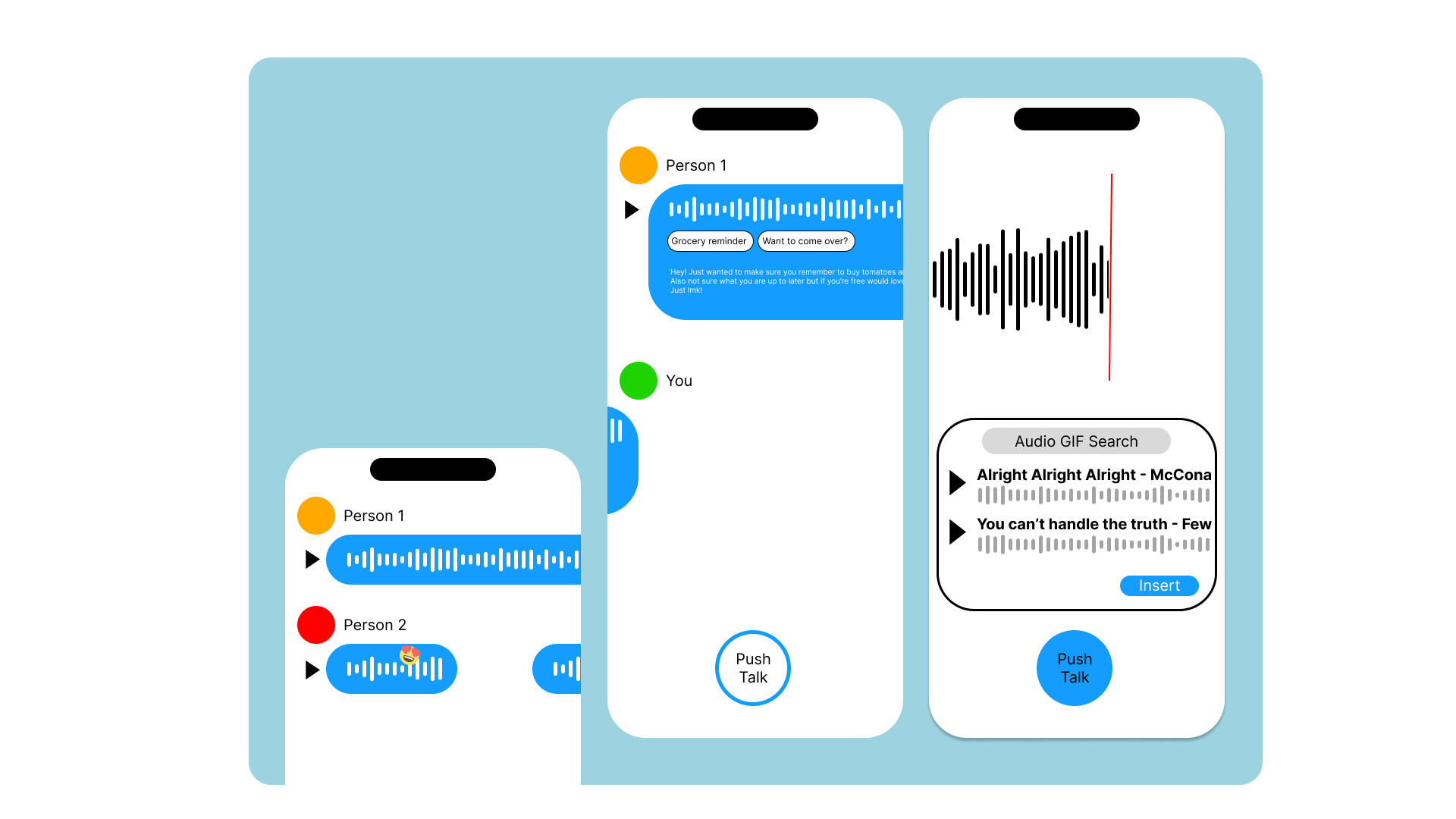An audio native messaging service that lets you talk to your friends and family with your voice.